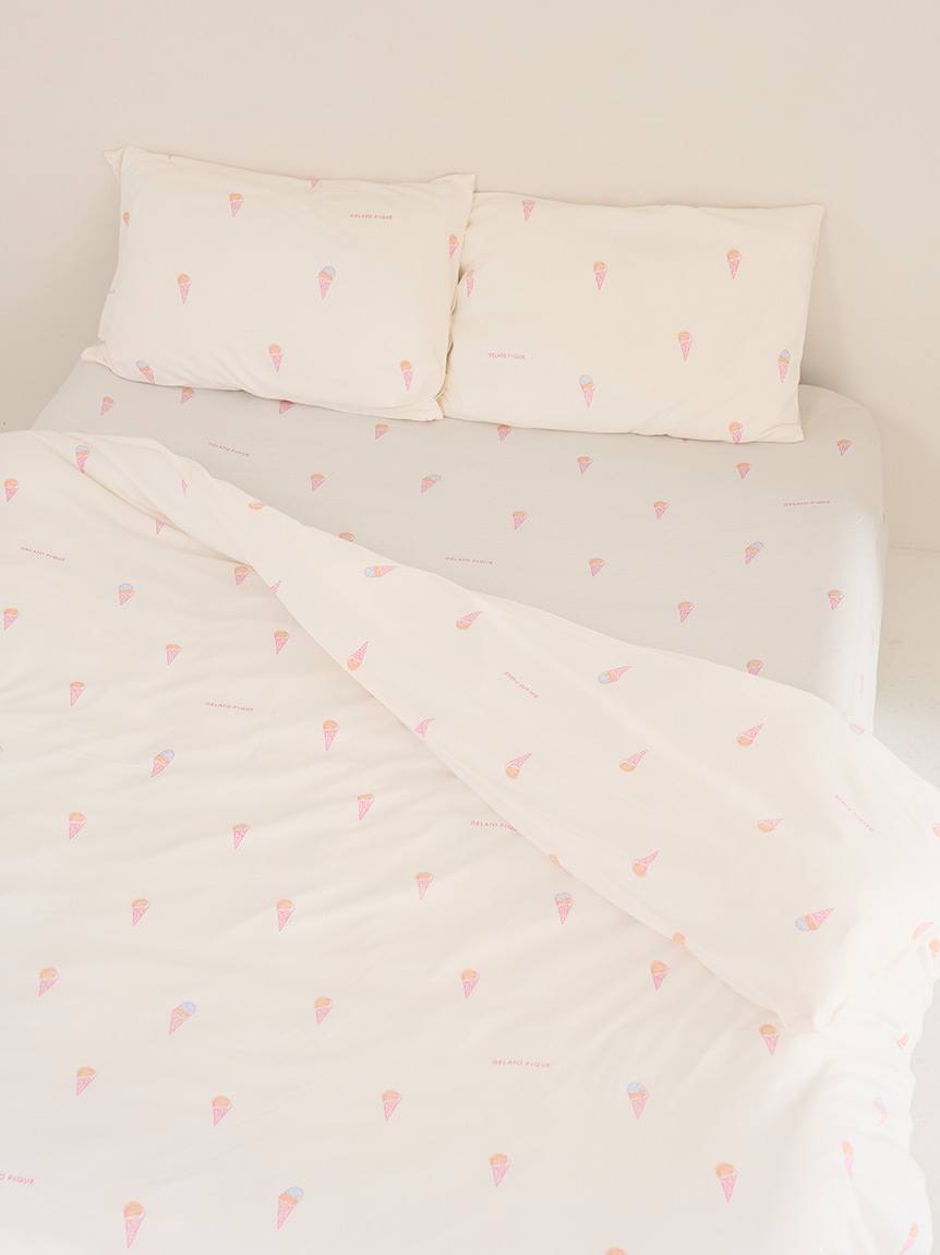 なめらかな肌触りの’スムーズィー’アイマスクや、シロクマとアイスをデザインした総柄寝具などにIFMC.(イフミック)加工が施されたgelato pique Sleepのアイテムがラインアップ。